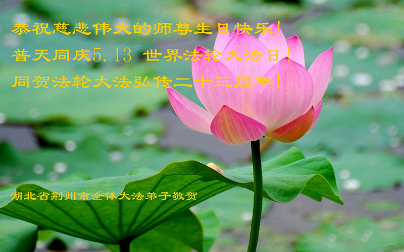 湖北省荊州市全體大法弟子恭祝師尊生日快樂!普天同慶世界法輪大法日!同賀法輪大法洪傳二十三週年!