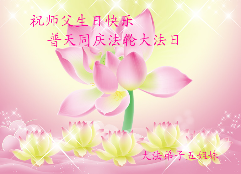 大陸大法弟子五姐妹祝師父生日快樂!普天同慶法輪大法日!