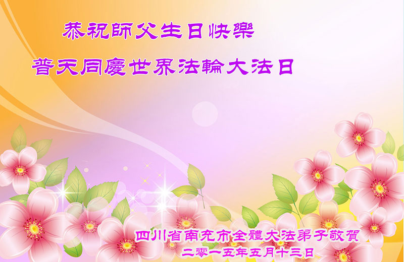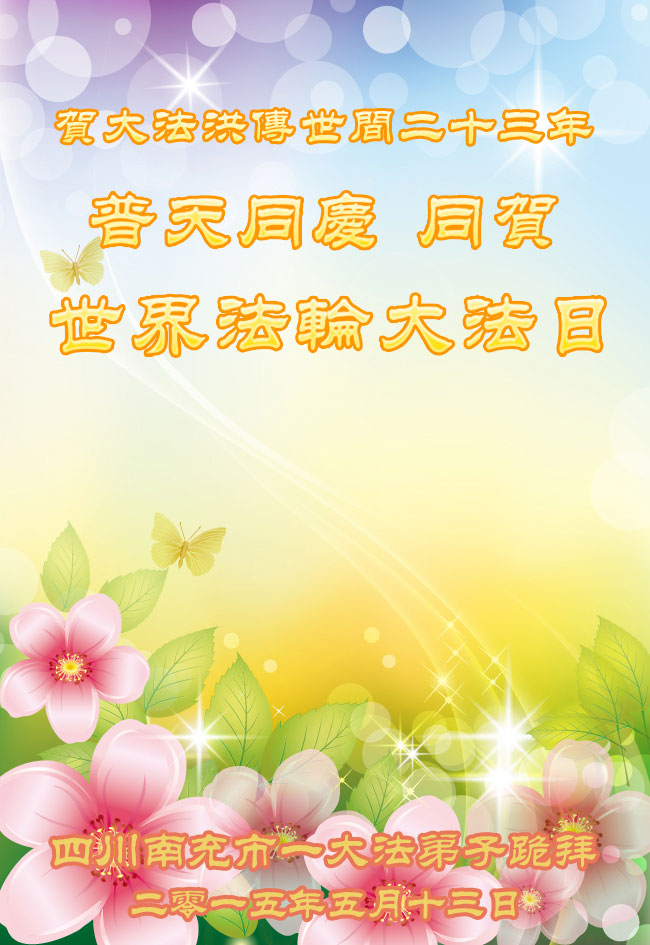 四川南充市三區五縣(一市)全體大法弟子恭祝慈悲偉大的師尊華誕暨法輪大法洪傳二十三週年!普天同慶世界法輪大法日!