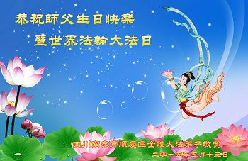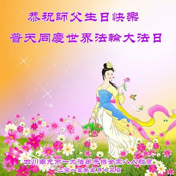 四川遂寧市兩位大法弟子恭祝師父生日快樂!祝賀大法洪傳23週年!