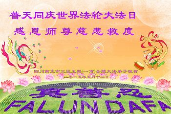 四川南充市全體大法弟子恭祝慈悲偉大的師尊華誕暨法輪大法洪傳二十三週年!