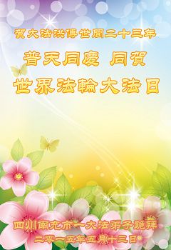 四川南充市一大法弟子跪祝師尊生日快樂!賀大法洪傳二十三週年!普天同慶世界法輪大法日!