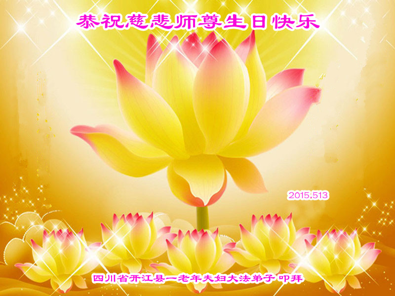 四川省達州市開江縣一老年夫婦大法弟子恭祝慈悲師尊生日快樂!