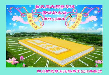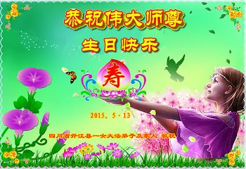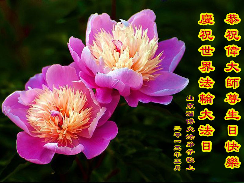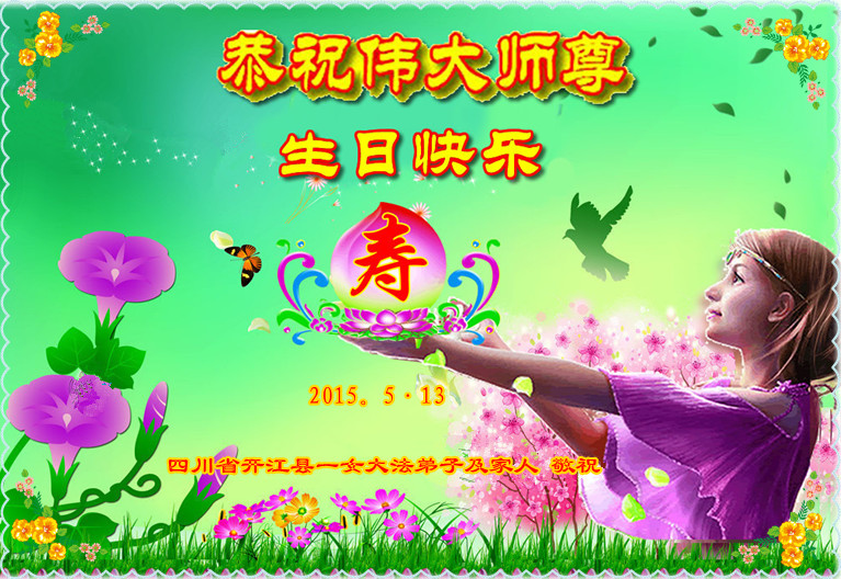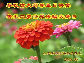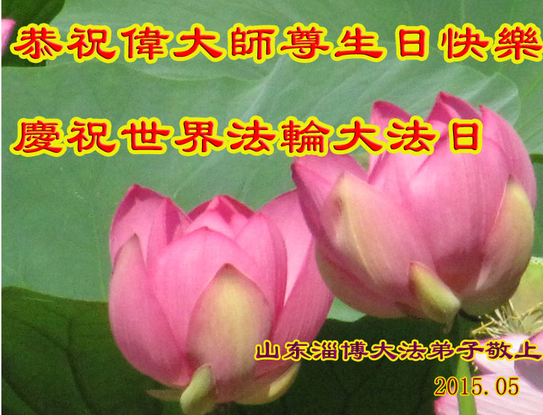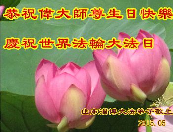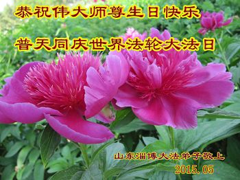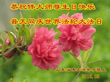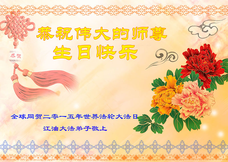值此二零一五年世界法輪大法日之際,衷心祝賀,恭祝您大法恩師李老師生日快樂!