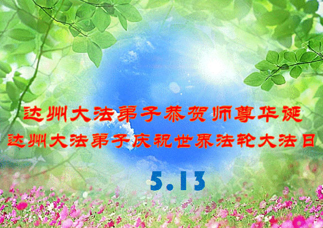 走過了風霜雪雨,在這感恩的時節,迎來了又一個新的五月。五月,生機盎然;五月,萬象更新。1992年的5月13日,是人類歷史上一個光輝的日子,李洪志師父在中國長春首次將法輪大法公開傳給世人。從那一天開始,法輪佛法傳遍了中國,傳向了世界。為紀念這個特殊的日子,自2000年的5月13日,開始了「世界法輪大法日」的慶祝。5月13日成為全世界大法弟子和全世界善良民眾共同歡慶的節日。大陸大法弟子無不歡欣鼓舞,充滿新生的喜悅,興奮、自豪!讓我們一起同慶、同祝、同頌!5月13日也是法輪功創始人李洪志師父的華誕日,在這普天同慶的時刻,大陸法輪大法弟子感謝師尊傳法救度之恩,並恭祝師尊:生日快樂!師尊:您辛苦了!弟子唯有多學法,努力做好三件事,兌現誓約圓滿隨師還。
