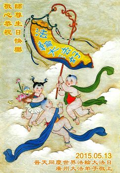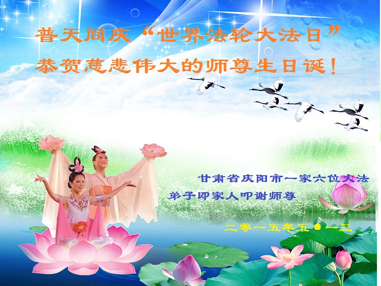 慈悲偉大的師父好!廣州市大法弟子與父親同修攜全家在5.13世界法輪大法日來臨之際,恭祝我們慈悲偉大的師尊生日快樂!普天同祝同賀同慶2015年的世界法輪大法日到來!