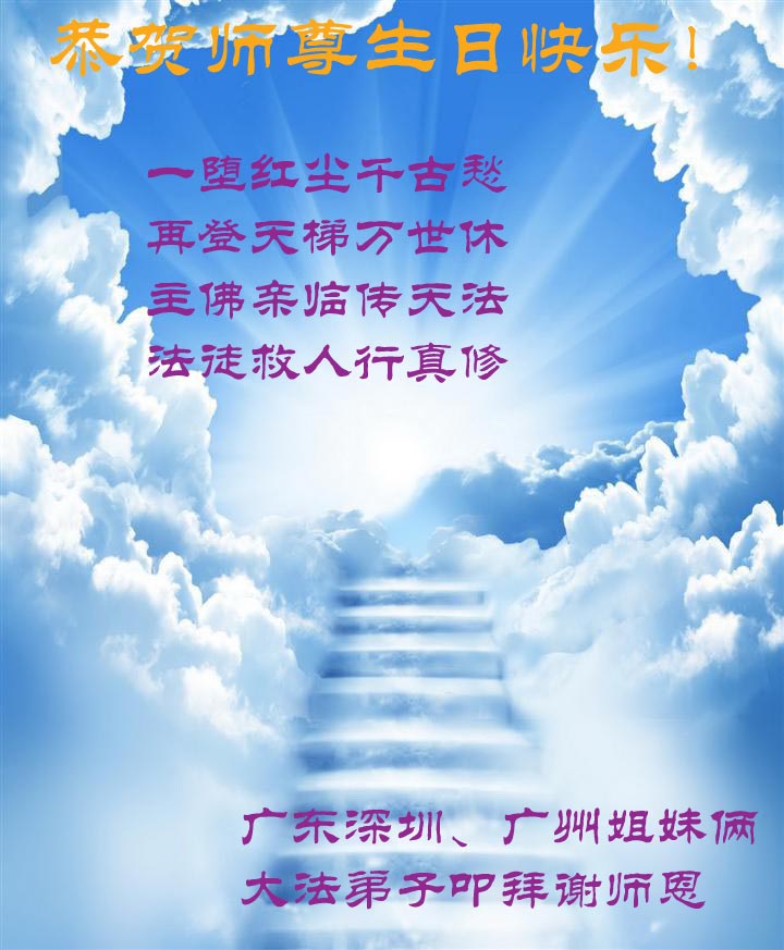 祝您生日快樂!在修煉過程中,我仍有很多執著,但作為您的弟子,我真心想好好修煉,在大法中歸正自己,走出常人,救更多的人,走向神。