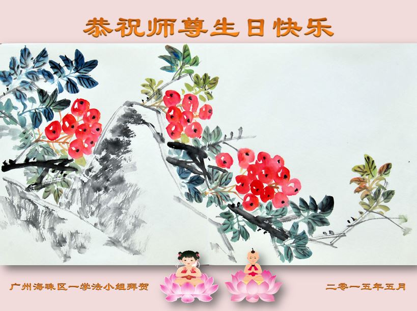 廣東省廣州一學法小組大法弟子恭祝慈悲偉大的師尊生日快樂!