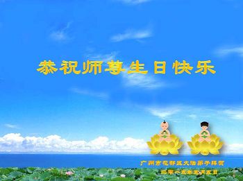 廣東省廣州大法弟子恭祝慈悲偉大的師父生日快樂!