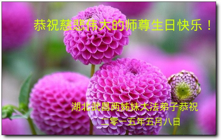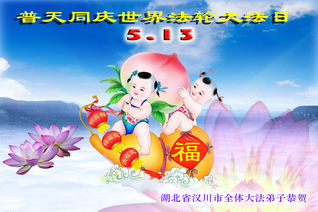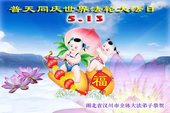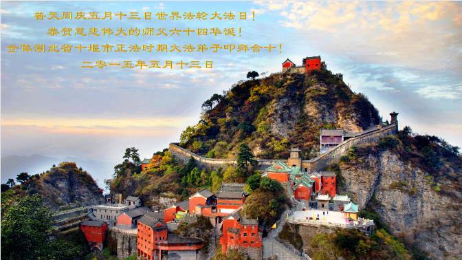 又到了這普天同慶的時刻,從弟子們紛紛由師尊指引著登上法船的那一刻起,每一位弟子心中都種下真、善、忍的種子,無論弟子們精進也好,懈怠也好,但是師父卻從未放棄過我們,放棄過眾生,只要弟子們有一點點想要精進的心,只要眾生有一絲絲回歸覺醒的願望,慈悲偉大的師父都給予無限慈悲的點化、呵護與安排。是您牽著我們的手一路走來,走過這宇宙正法的偉大時刻,您幾乎為我們,為所有的眾生耗盡了自己的一切,其中多少心酸與艱辛,弟子們不得而知,但是縱有千言萬語也無法盡述徒兒們對您的敬仰和感恩。無論我們今天分散在世界哪一個角落,但湖北省十堰市都是我們遇到法聞到法遇到師父登上回歸的法船的地方,謹代表全體湖北省十堰市正法時期大法弟子同賀您的六十四華誕!恭祝慈悲偉大的師父生日快樂!弟子們一定不負您的重望,做好您要求的每一件事,用在法中修出的慈悲救度所有珍貴的為法而來的眾生!
