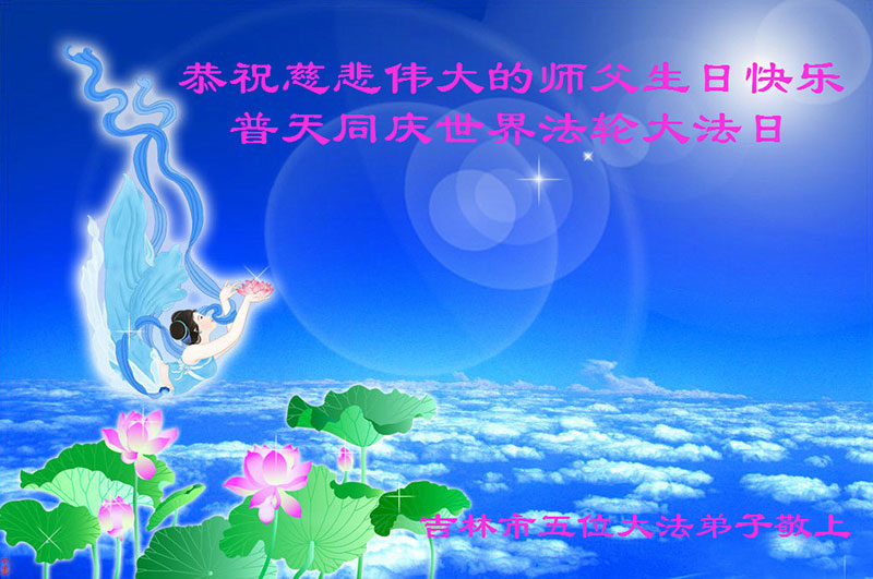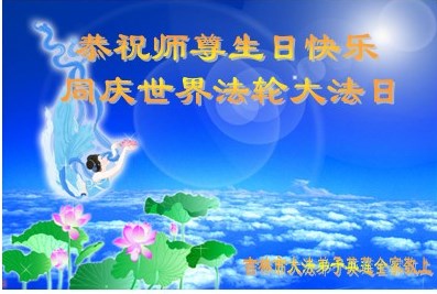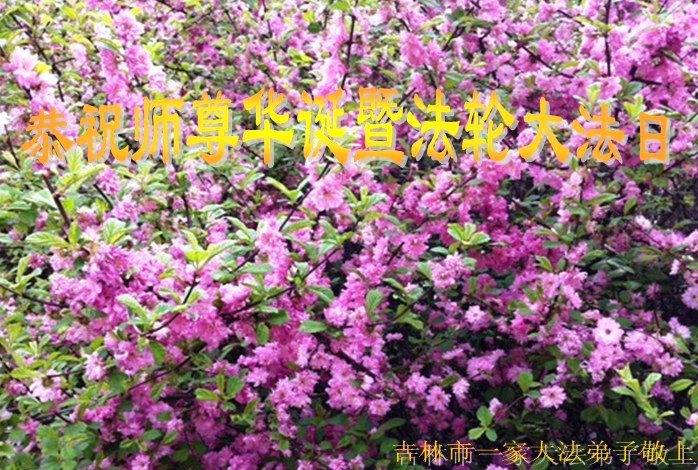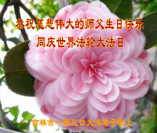 吉林市大法弟子一家恭祝師尊生日快樂!暨法輪大法洪傳二十三週年!
