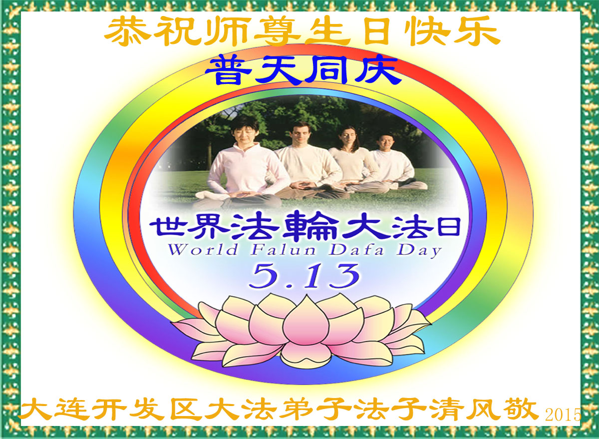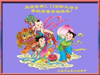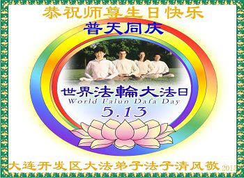 我是大連大法弟子,我代表全家慶祝5.13世界大法日!恭祝師尊生日快樂!