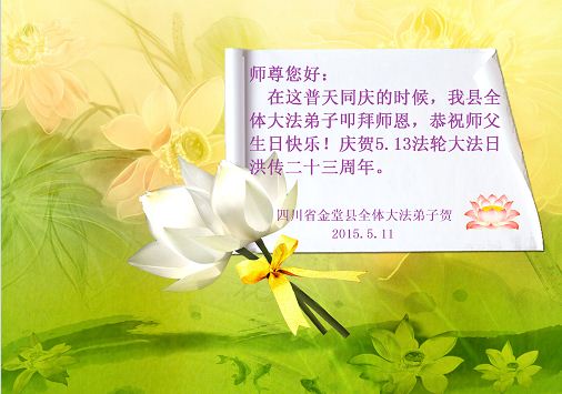 四川省金堂縣全體大法弟子恭祝慈悲偉大的師尊生日快樂!