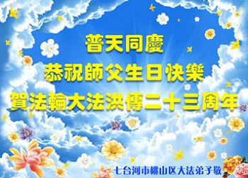 在世界法輪大法日也是師父生日來臨之際,祝師父生日快樂!