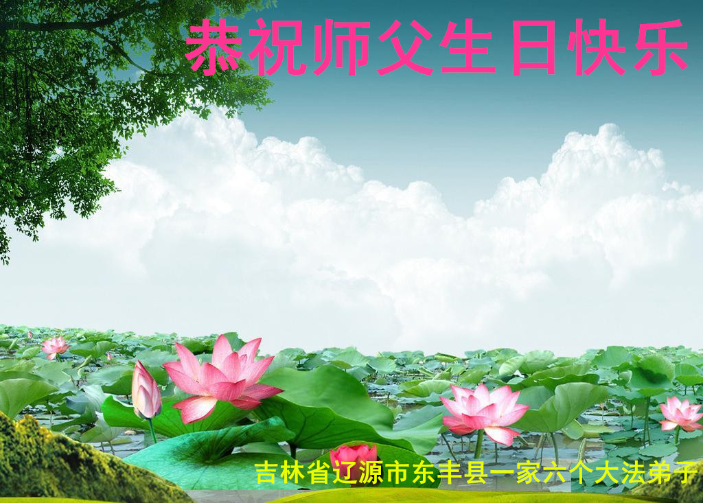 吉林省遼源市東豐縣一家六口大法弟子恭祝師父生日快樂!