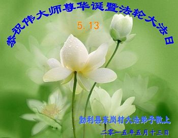 河北省正定縣大法弟子恭賀513世界法輪大法日!恭祝慈悲偉大的師父生日快樂!