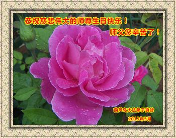 在這普天同慶的日子裏,不爭氣的弟子跪拜恩師,道一聲師尊您辛苦了。在修煉路上我跌跌撞撞、摔一跤又一跤的。您時時刻刻都在慈悲呵護著弟子,真的用甚麼語言也表達不了對師尊的感恩。只有精進實修,做好三件事。再次恭祝偉大師尊生日快樂!