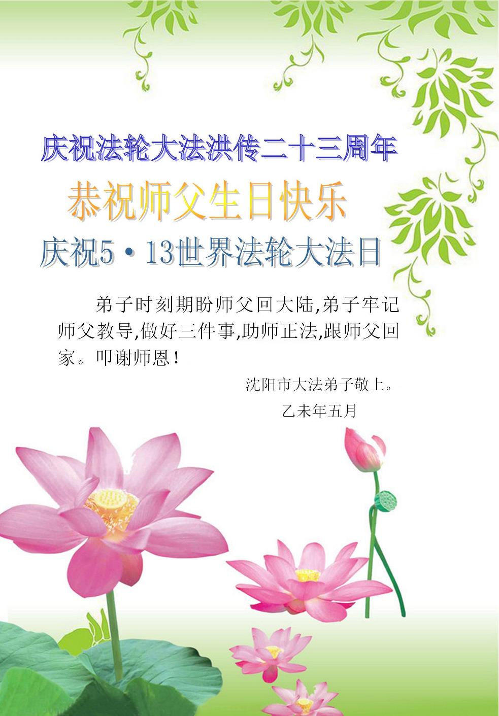 瀋陽蘇家屯大法弟子恭祝師尊生日快樂!