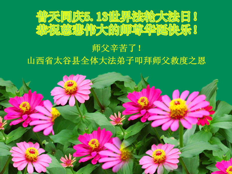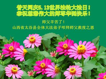 山西省太谷縣大法弟子恭賀師尊華誕快樂!