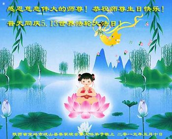 西安大法弟子恭祝慈悲偉大的師父生日快樂!