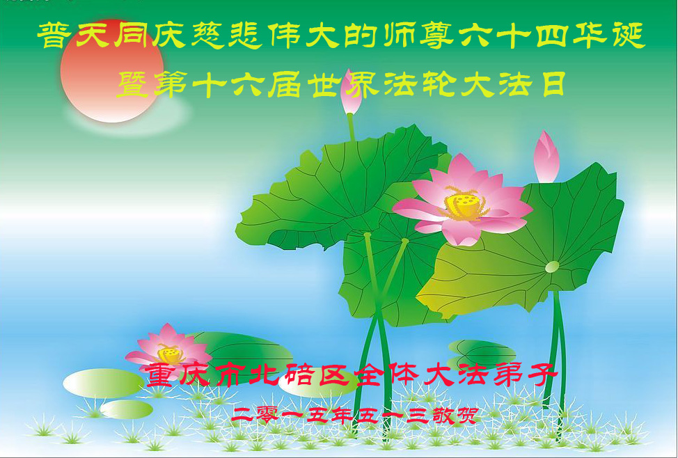 重慶市北碚區大法弟子恭祝慈悲偉大的師尊生日快樂!