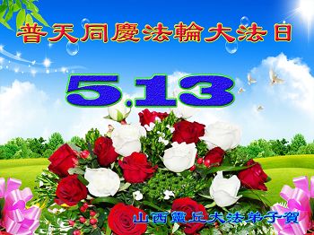 山西省靈丘縣大法弟子慶祝世界法輪大法日!恭祝慈悲偉大的師尊生日快樂!