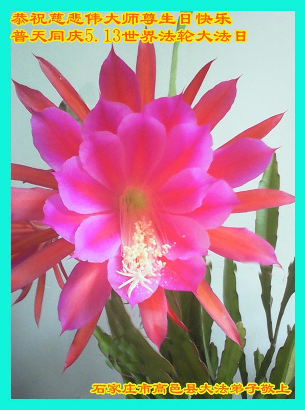 勝利油田孤島地區一家大法弟子恭祝慈悲偉大的師尊生日快樂!慶祝世界法輪大法日!