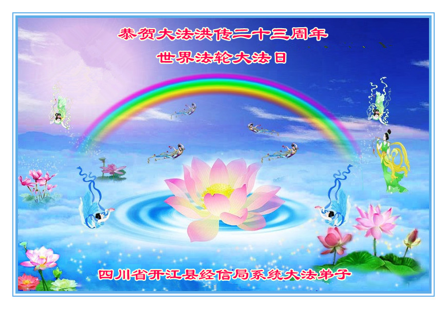 四川省達州市開江縣經信局系統大法弟子恭賀大法洪傳二十三週年!