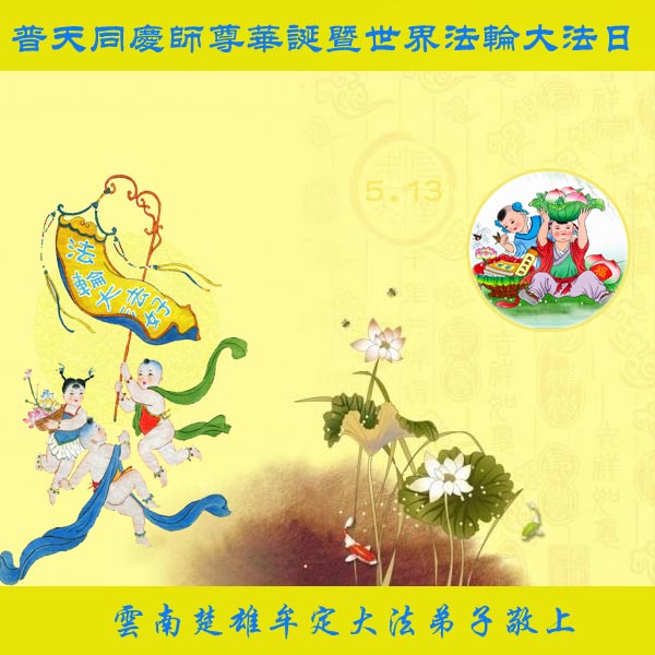 雲南楚雄牟定大法弟子恭祝慈悲偉大的師尊生日快樂!天上人間共同歡慶5.13世界法輪大法日!