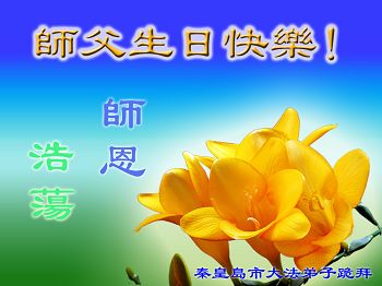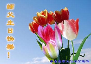 師父生日快樂!弟子一定不辜負師父的慈悲苦度,在正法快要結束的關鍵時刻,一定做好三件事,弟子盼望與師父早日相見,早日隨師父回家!