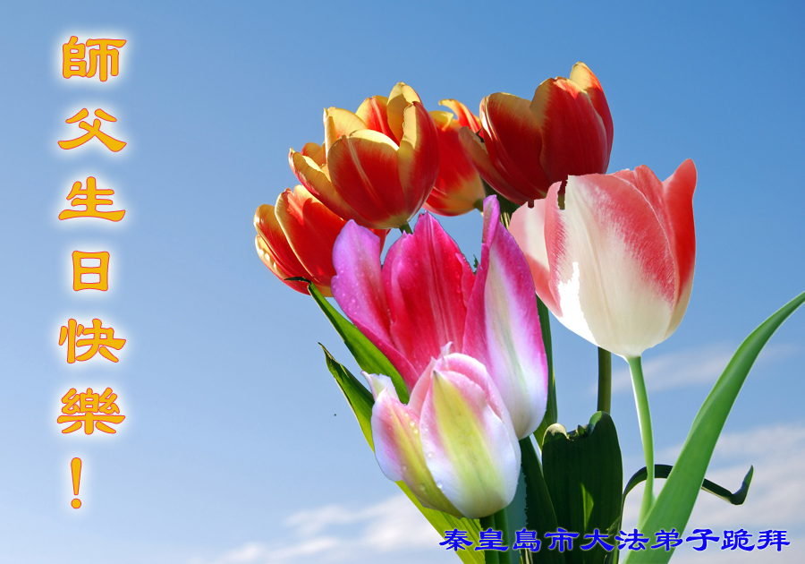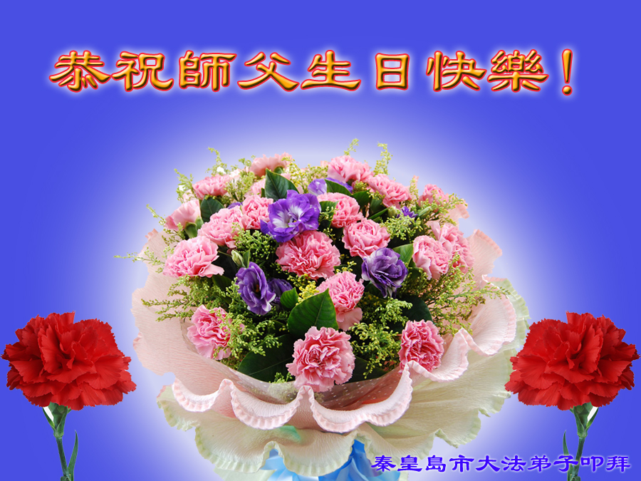 秦皇島市大法弟子恭祝慈悲偉大的師父生日快樂!