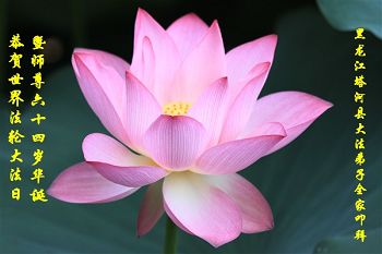 黑龍江省七台河市勃利縣一家大法弟子恭祝師尊生日快樂!慶祝世界法輪大法日!