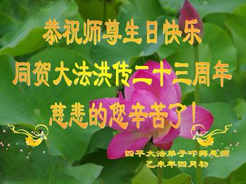 恭賀法輪大法洪傳二十三週年!恭祝慈悲偉大的師尊生日快樂!