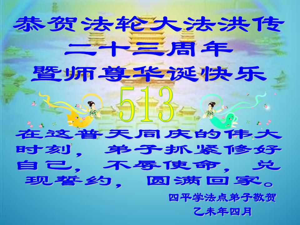 吉林省四平大法弟子普天同慶大法洪傳二十三週年暨師尊華誕快樂!