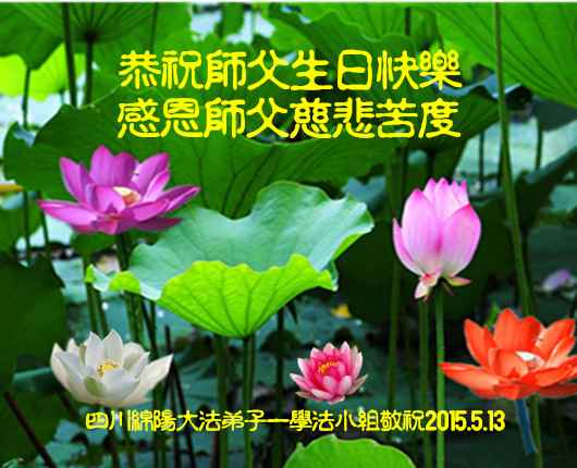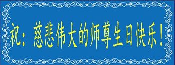 師尊您辛苦了!我們無比想念師父。用甚麼語言也表達不盡弟子們對師父的感恩,弟子們叩謝偉大師尊的慈悲苦度!弟子們一定會做好三件事,多救眾生,兌現誓約。請師父放心。再一次敬祝師尊生日快樂!