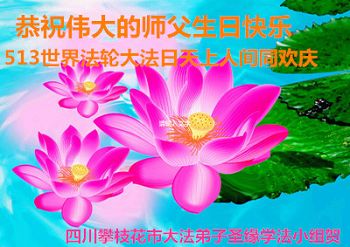 「五•一三」又到了,在這普天同慶的日子裏,弟子們謹以最謙恭誠摯的心情恭祝世界法輪大法日暨恭祝師尊華誕!盼望早日與師尊團聚。