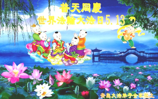 山東青島大法弟子善真恭賀世界法輪大法日!普天同慶法輪大法洪傳世界!