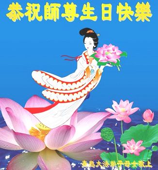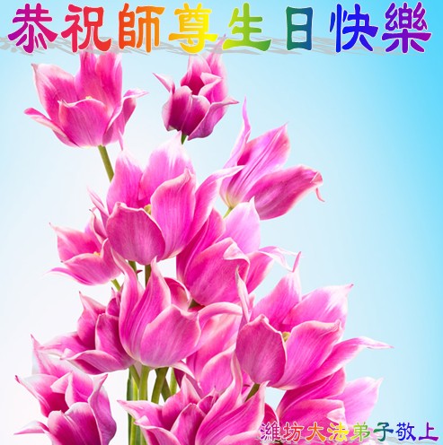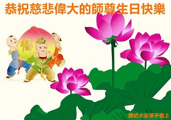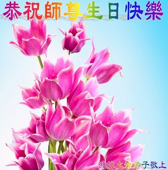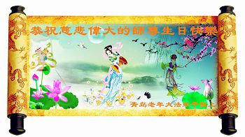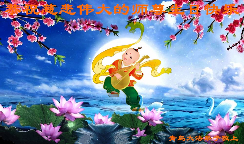 山東省青島大法弟子恭祝慈悲偉大的師尊生日快樂!
