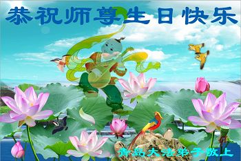 山東青島大法弟子善真恭祝師尊生日快樂!