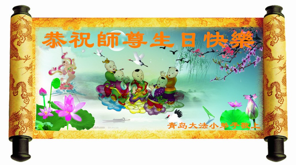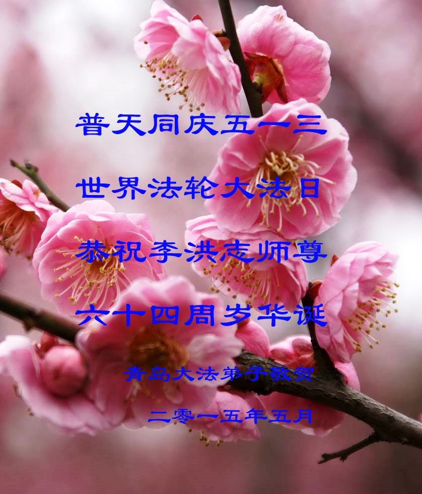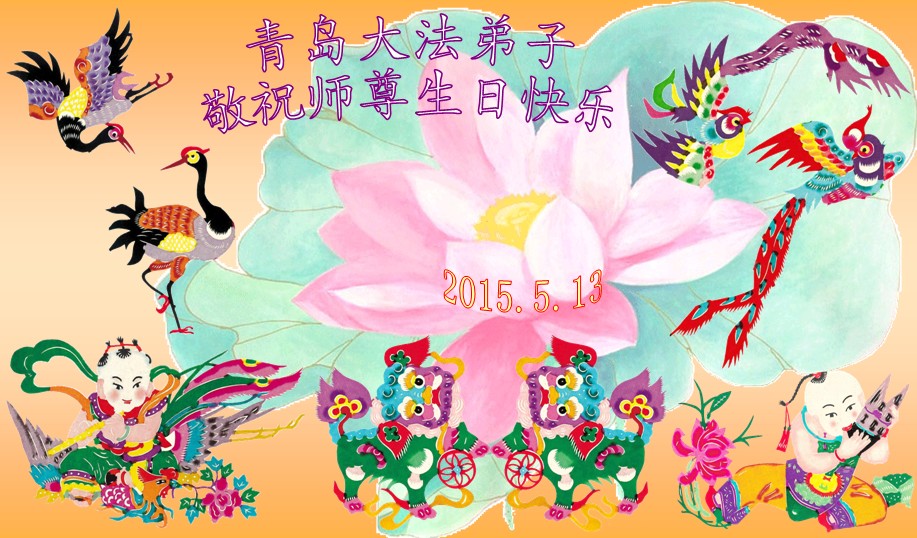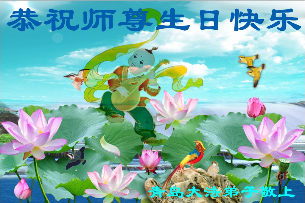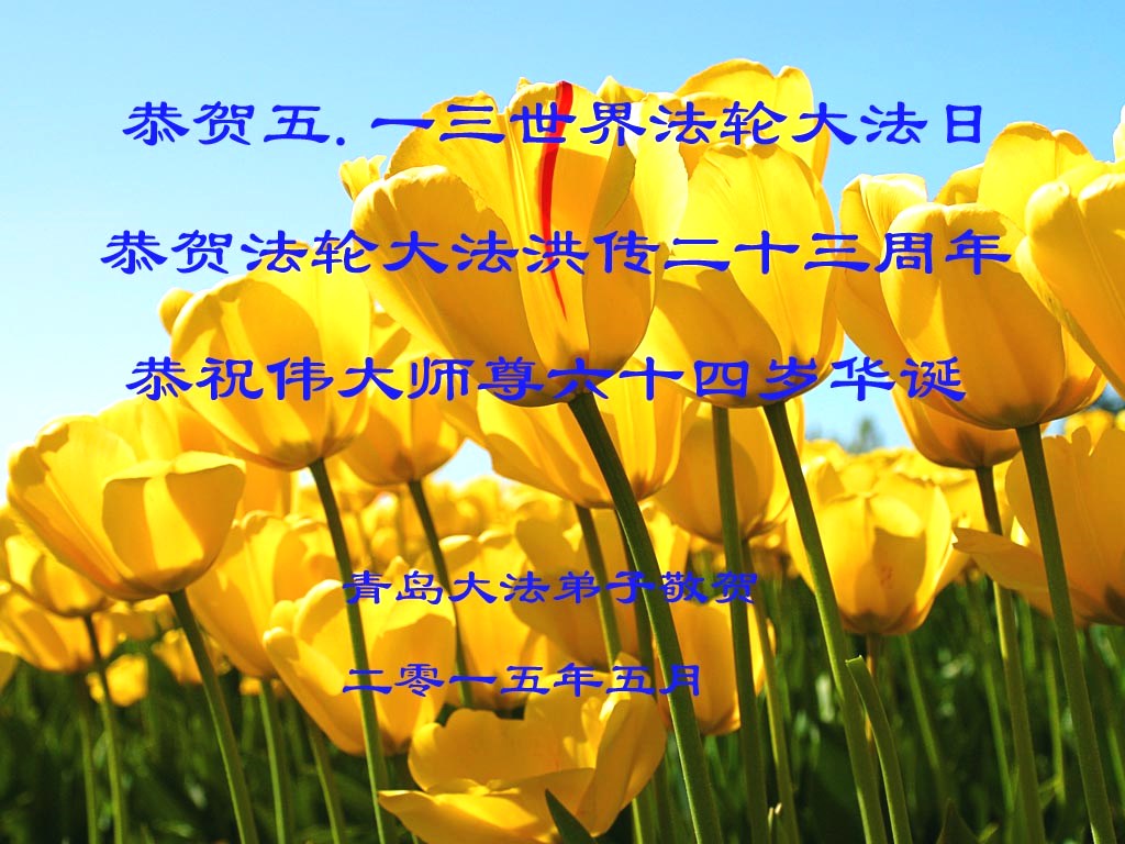 山東省青島一學法小組大法弟子恭祝師尊生日快樂!普天同慶世界法輪大法日!