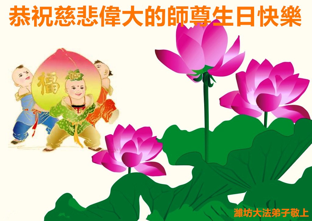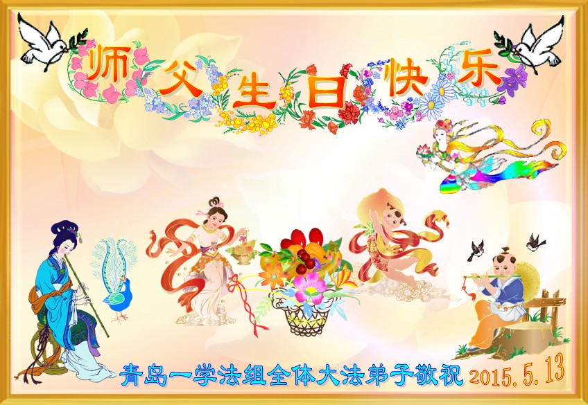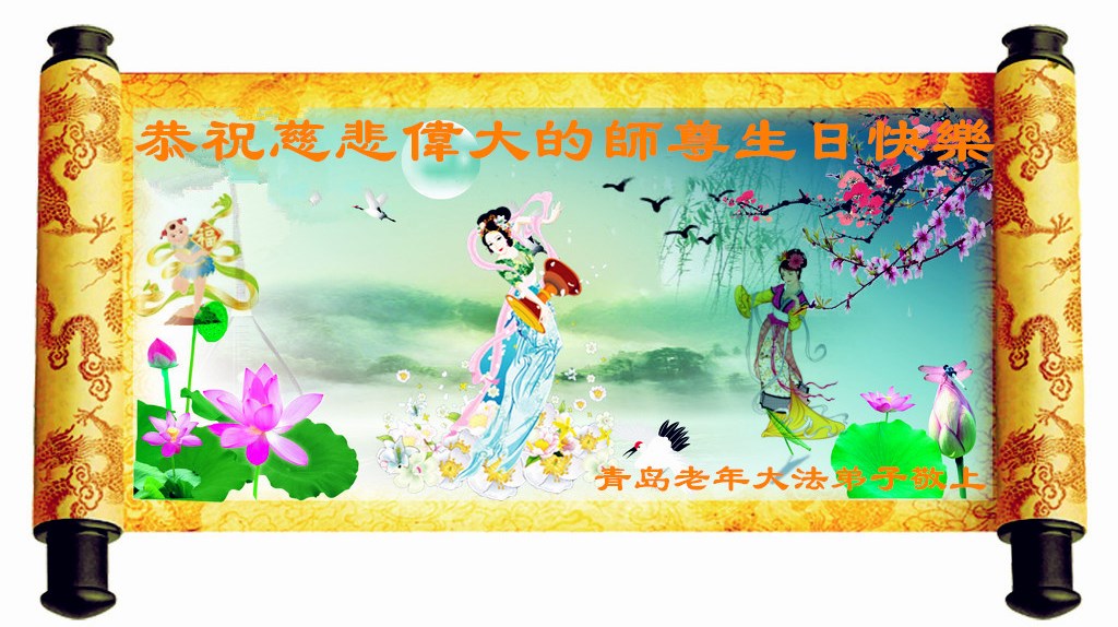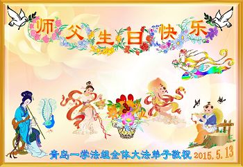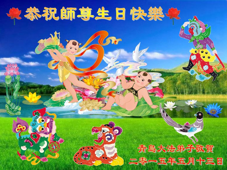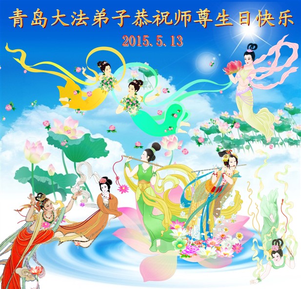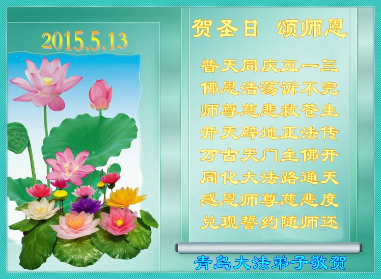 山東省青島一學法小組大法弟子恭祝師尊生日快樂!普天同慶世界法輪大法日!