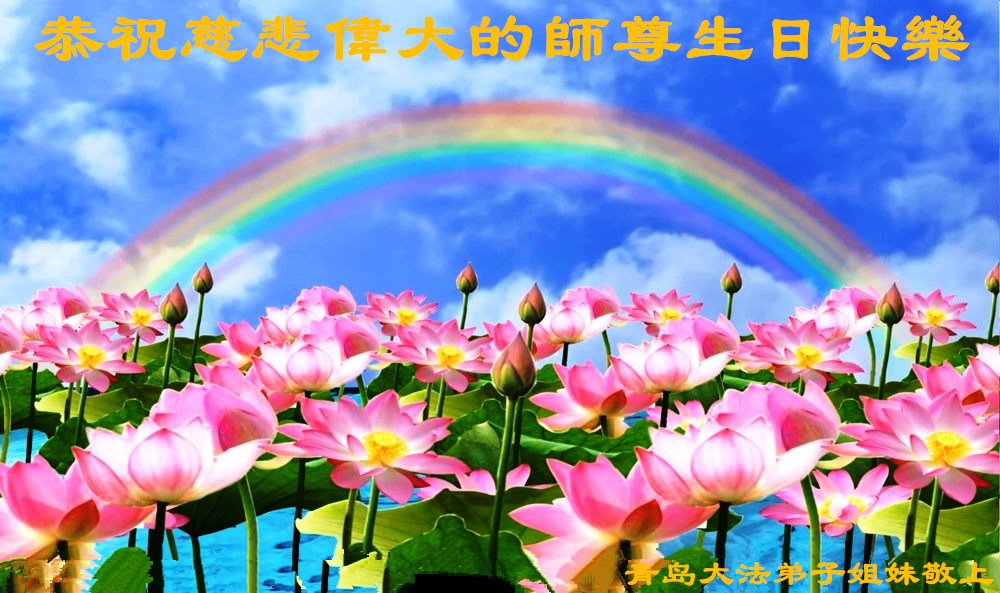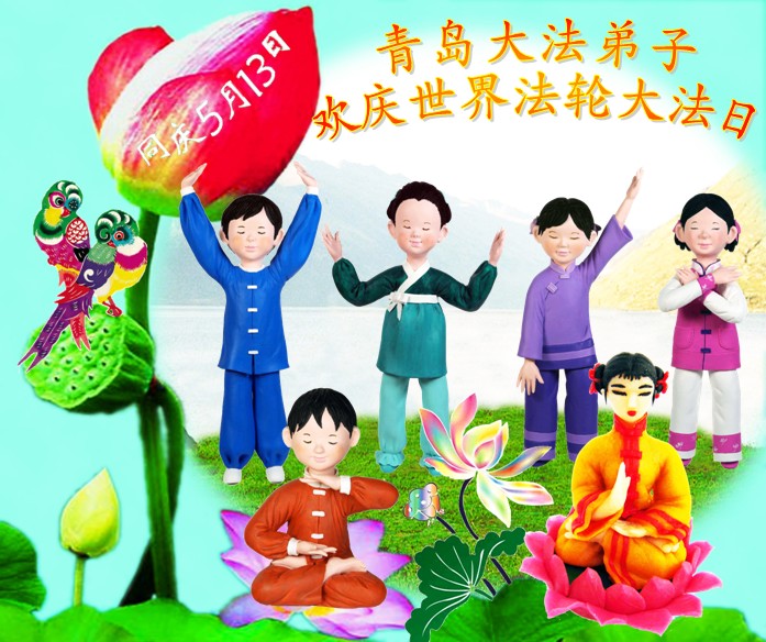 山東省青島大法弟子慶賀世界法輪大法日!恭祝慈悲偉大的師尊生日快樂!