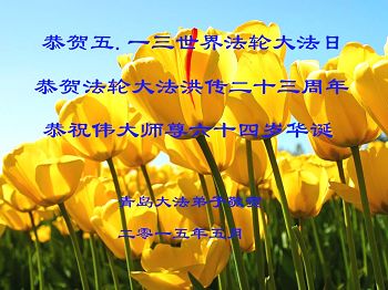 山東省青島大法弟子慶祝法輪大法洪傳二十三週年!恭祝慈悲偉大的師尊生日快樂!