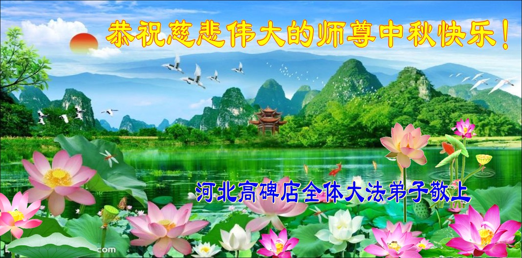 河北省保定蓮池區一學法小組大法弟子恭祝慈悲偉大的師尊中秋節快樂!