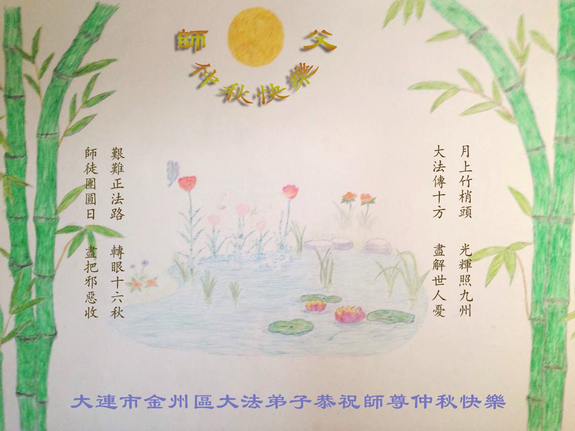 遼寧省大連一學法小組大法弟子恭祝師尊中秋節快樂!