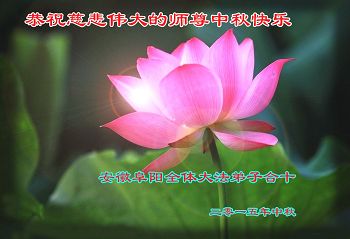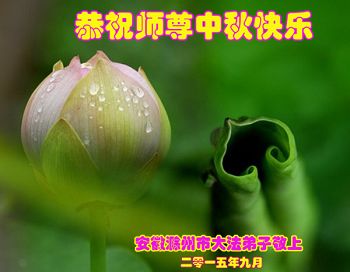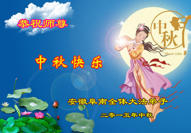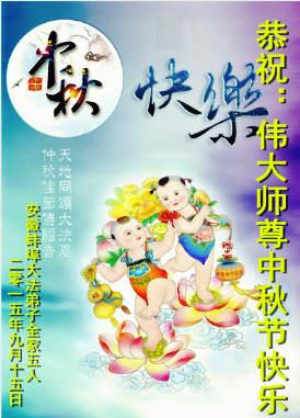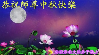 2015年中秋佳節來臨之際,弟子恭祝慈悲偉大的師尊節日快樂!萬分感恩師尊慈悲苦度眾生,萬分感恩師尊時時看護著、點化著弟子,弟子才能平穩的走在助師正法神的路上。弟子還很多的執著心需要修去,要修出強大的正念,修出慈悲心,修去人心,做好三件事,按師尊的要求多救人,讓師尊少一份操心,多一份欣慰。遠隔重洋、萬水千山,也擋不住弟子想念恩師的心,望明月盼師歸,淚如雨,唯有精進報師恩!跪拜恩師!