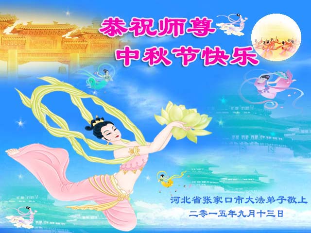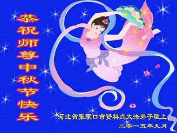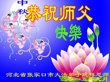 我們陽原縣全體大法弟子在中秋節到來之際向師父問好好!師父您辛苦了!我們要緊跟正法進程,做好三件事,多救人,跟師父回家!