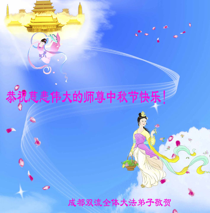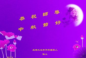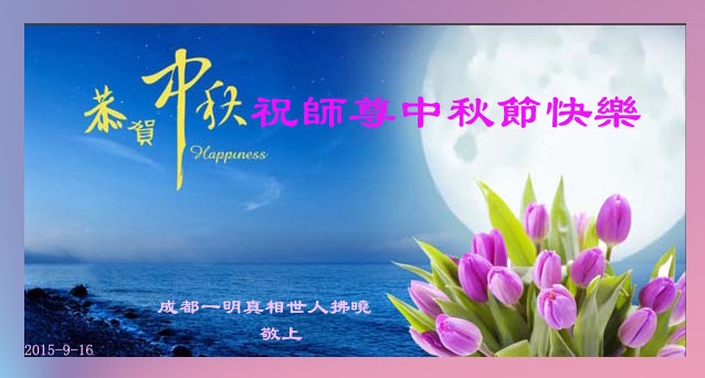 中秋節到了,彭州市大法弟子都很想念師尊,師尊您辛苦了!恭祝師尊中秋節快樂!