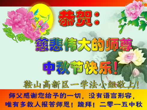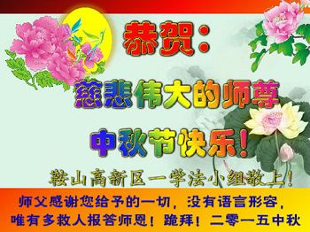 遼寧省鞍山高新區一學法小組大法弟子恭祝慈悲偉大的師尊中秋節快樂!