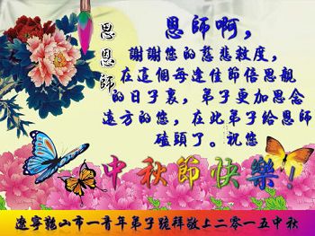 遼寧鞍山市一青年大法弟子恭祝師尊中秋節快樂!